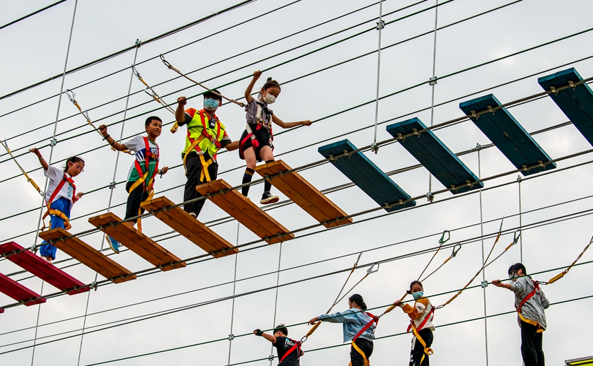 拍客 | “五一”假期最后一天!孩子们在海口一乐园畅游娱乐项目